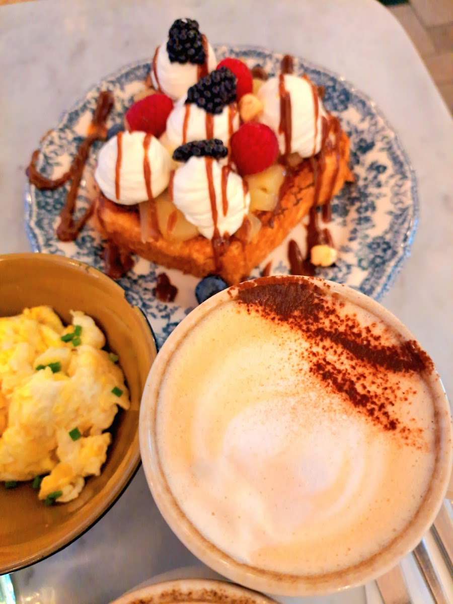 Was there for brunch at lunch time, was crowded but didn’t have to wait long. Nice ambiance, friendly staff, delicious food. My friend had the French Toast with pistachio. It has a good mix of textures, pistachios adds a nice crunch, and it’s not too sweet. I had the Mediterranean Toast. It’s everything I like in a dish! Full of flavour. Dishes were presented beautifully. Will be back to try other dishes.