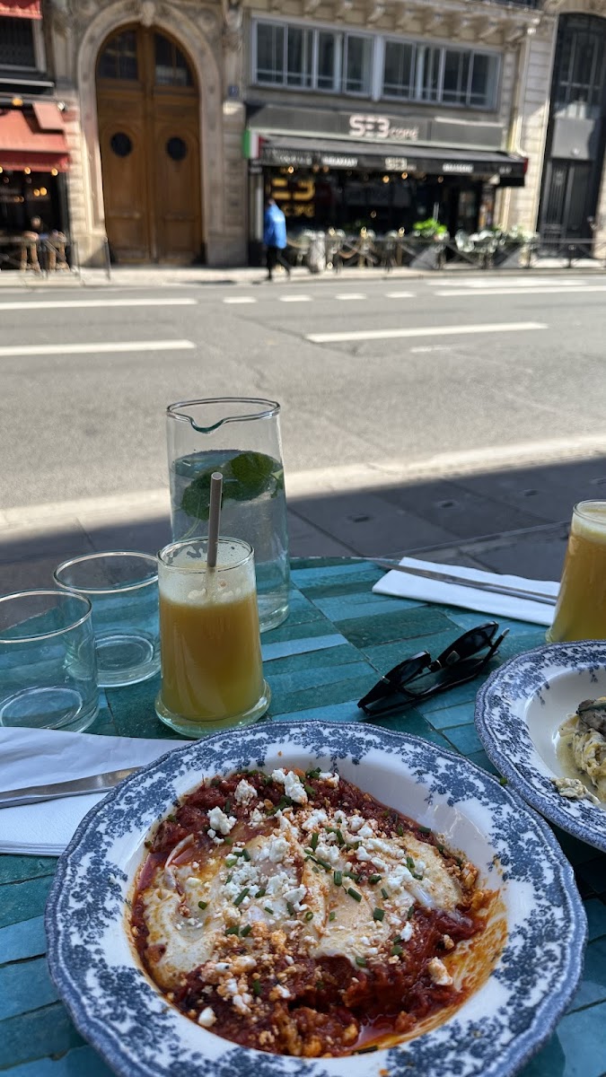 Beautiful little restaurant. I had the Shakshuka which tasted wonderful but the eggs were a little over done. My wife’s meal was fine. I liked her beef bacon. Coffee was some of the best I have had in France and the water carafe with mint and lemon was a nice touch. Would go back.